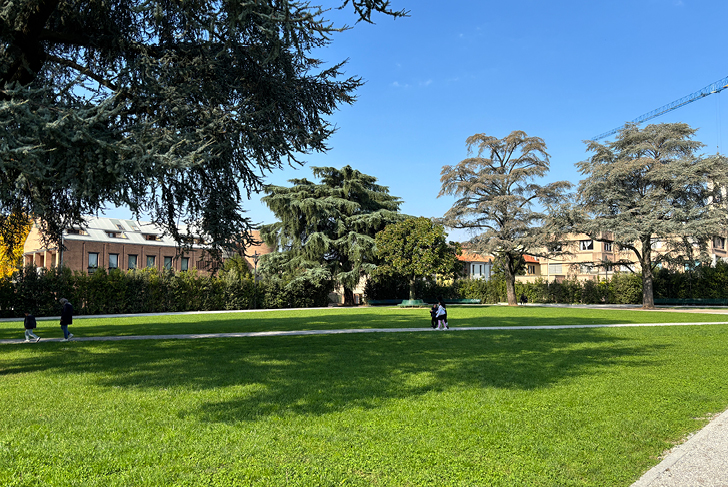 Via Giussani and Via Bondi, streets bookending the new Piazza Gioia garden square, are pedestrian-friendly. By eliminating the parking lots and roadways, our project substantially increases the permeable surface area. This, in turn, improves growth conditions for the trees and reduces heat islands.