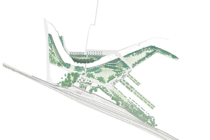 Liège, principale centralité de Wallonie, s’est développée autour de la Meuse et de ses affluents, l’Ourthe et la Vesdre. À terme, la mutation de nombreuses friches industrielles de la vallée et leur mise en réseau permettra l’émergence d’un grand parc fluvial comme nouvelle armature publique. Le réaménagement de la rive gauche de la Vesdre en constitue le premier maillon. Ce nouveau parc est conçu comme une zone d’expansion des crues s’étendant le long des berges profondément remodelées et renaturées. Les grandes entités paysagères de la vallée de la Dresde, ripisylve, plaine alluviale et zone humide, sont transposées et créent un parc résolument contemporain, combinant hydrologie et écologie. Ce paysage de zones humides et de mares favorise une gestion durable des eaux pluviales, crée des milieux propices à la diversification des écosystèmes et reconstitue les trames vertes et bleues. Au cœur du parc, une grande clairière, ceinturée par la ripisylve qui borde la Vesdre et des bosquets d’arbres le long de la voirie, offre une véritable respiration en lien avec la rivière