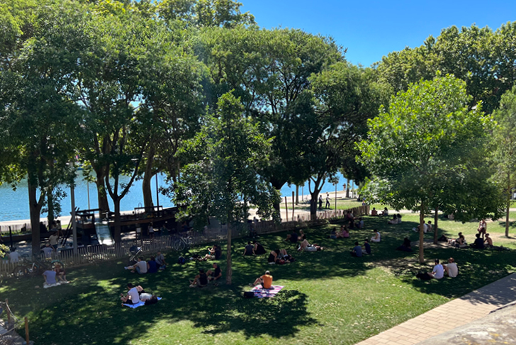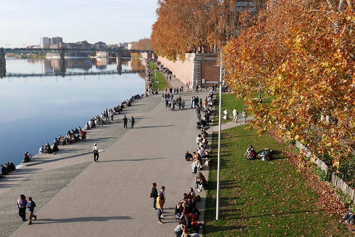 La rénovation du port de la Daurade redonne vie à un lieu emblématique de la ville avec sa vue exceptionnelle sur la Garonne. Les arbres existants sont préservés et 24 nouveaux arbres (frênes, aulnes, saules, érables, etc.) sont plantés sur la pelouse. Sous les grands arbres existants, une aire de jeux évoque les anciens métiers liés à la navigation avec notamment une réplique de gabarre. L’alternance d’un dallage en grès des Pyrénées et de calades de galets de Garonne met en valeur le patrimoine historique de cet espace. Le parcours de la source naturelle de la Daurade est représentée en surface et les murs de la digue sont restaurés à l’aide de matériaux traditionnels : vieilles briques et mortiers de chaux traditionnels. De nouveaux usages s’installent : espace de restauration, marchés occasionnels, pique-niques informels, etc.