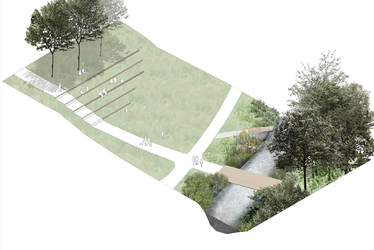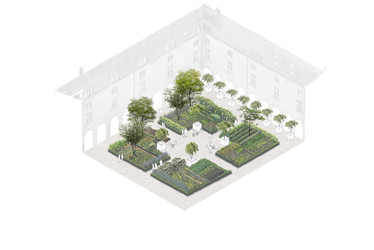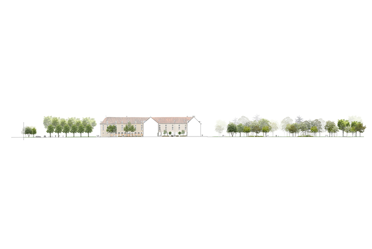 L’Hôtel-Dieu, avec sa grande valeur historique et paysagère, s’inscrit harmonieusement dans le parcours patrimonial reliant le centre-ville et le monastère royal de Brou. La grande diversité de situations du site permet de créer des espaces aux ambiances paysagères variées. Deux écritures paysagères se complètent : l’une, marquée par les tracés historiques définis par l’architecture dans la partie nord et l’autre, d’inspiration plus naturaliste, située dans la partie sud et le long des berges du canal de la Reyssouze. Dans chacun de ces espaces, la grande qualité du patrimoine arboré est commune. La strate arborée est complétée et diversifiée afin d’aboutir à une luxuriance des végétaux. Les correspondances et les complémentarités botaniques entre les différentes compositions végétales insèrent le site dans une même entité paysagère que le Parc des Baudières à l’est et le jardin du Monastère Royal au sud. Des modes de gestion et des plantations successives sont envisagés pour tendre dans le temps vers plus de cohérence écologique.