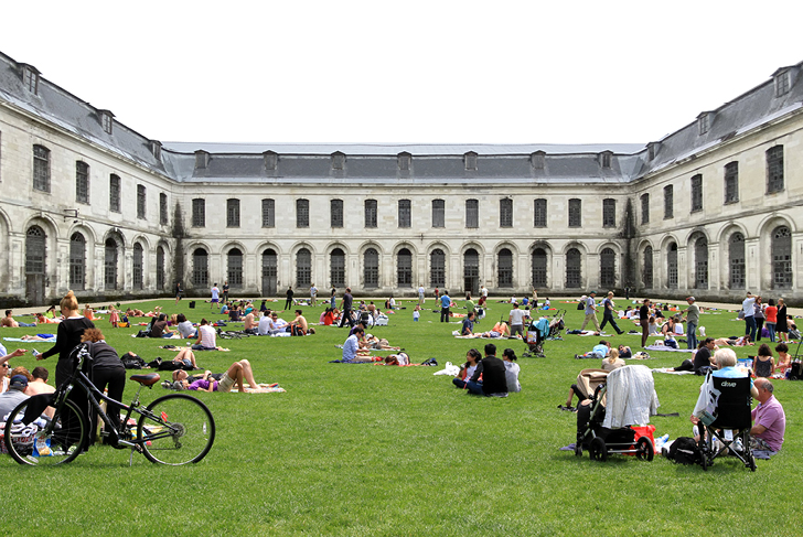 The abbey, revived and redesigned around its complex layers of history, now provides a collection of varied community spaces. Swaths of hardscape incorporate water features, while seamlessly blending in with the historical layout of the abbey. A gravity-fed water system — the oldest in the abbey, dating from its founding in the 12th century — is preserved. Water is the central element in our project, emerging in watercourses, irrigation trenches, and pools. These water features flow alongside visitors, all while celebrating the architectural heritage of the site. A network of pathways and waterways defines and structures the space. The network of pathways is intentionally minimalist in order to streamline visitor flow and highlight the historic architecture. This clear spatial design accentuates lines of sight and enhances symmetrical features. The Courtyards and Gardens feature an impressive array of design styles, ranging from vast, open lawns to lush botanical gardens. At the Great Cloister (Grand Cloître), the understated landscape is designed to allow the surrounding architectural heritage to shine. The resulting, large lawn forms a welcoming space perfect for a wide variety of uses. A perimeter pathway framing the lawn highlights the base of the building.In the Small Cloister (Petit Cloître), a more intimate space, the historical landscape is restored. Here, the central garden, with its wide variety of species, is more botanical, experimental, and even medicinal.