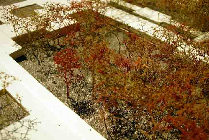 Les jardins creux sont des lieux précieux dont l’accès est contrôlable et déterminé. Les formes des plantations relèvent de l’artifice construit, leur matière au contraire évoque une nature plus libre.