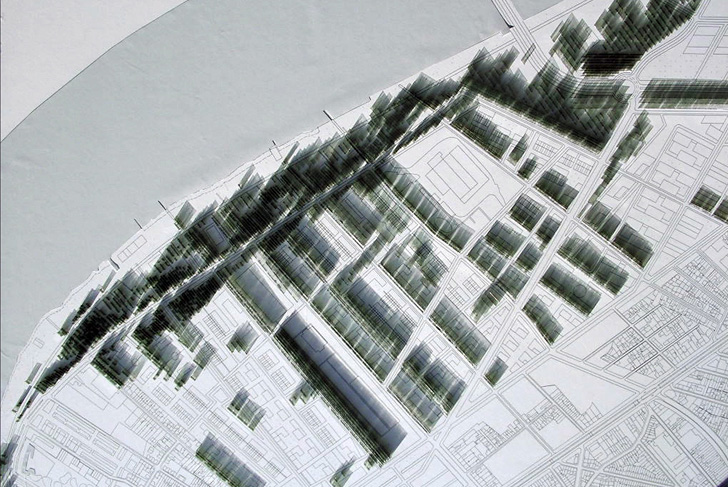Les berges de la Garonne offrent l’opportunité de créer un lien majeur, un très grand parc au cœur de Bordeaux (cf Parc aux angéliques). Les activités portuaires se sont déplacées, les quais de la rive gauche changeant de statut. Un Plan guide d’aménagement, réalisé en collaboration avec l’agence Bruno Fortier en 2005, projette différentes opérations de requalification afin de transformer ces rives. Les mutations urbaines s’échelonneront sur plusieurs dizaines d’années. Sur les berges, en vis à vis, c’est un parc qui est imaginé. Deux jardins se font face pour recomposer le paysage fluvial sur 400 hectares. Un processus très pragmatique de substitutions progressives est mis en œuvre : suivant les opportunités, chaque surface vacante est immédiatement plantée. Progressivement, les plantations remplacent les constructions et dernières traces de l’activité industrielle. Le parc conserve ainsi la mémoire du lieu comme celle du temps de sa mise en œuvre. Il propose une 'nature intermédiaire' qui accompagne les mutations, installant une qualité immédiate et durable afin d’accueillir les nouveaux quartiers. C’est là l’un des principaux objectifs : proposer des situations riches, multiples et ludiques pour habiter aujourd’hui en centre-ville.
