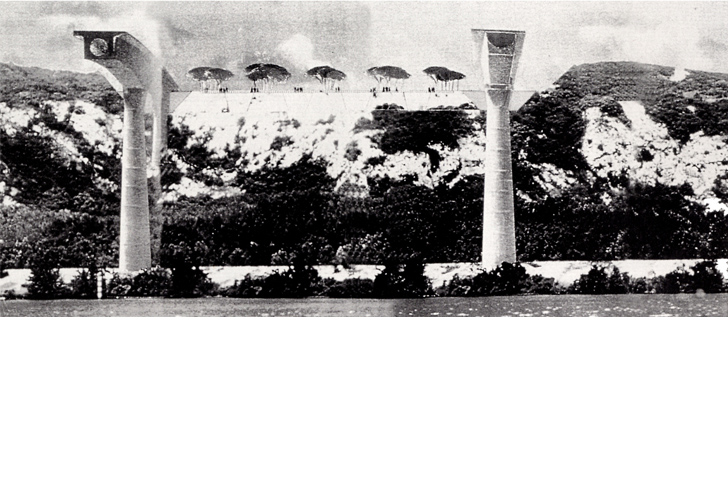 Les trois branches du TGV méditerranée se rejoignent sur le massif des Angles, près d’Avignon. Un double viaduc en béton blanc s’élance à 50 m au-dessus du Rhône, pour atterrir sur la plaine de la Courtine, à la confluence du Rhône et de la Durance. Les paysages qui accompagnent de tels projets d’infrastructure, cherchent en général à préserver l’existant en minimisant la présence de l’ouvrage bâti. Nous pensons au contraire qu’en terme d’échelle, infrastructure et grand paysage sont comparables.