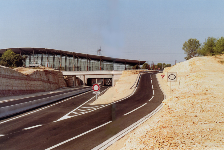 La présence de la gare dans le paysage est soulignée par des rangées de micocouliers longeant les quais, l’espace entre ces derniers et les quais étant occupé par un jardin méridional planté à dominante de lauriers roses. Les parkings – de 700 places avec une extension possible à 1 100 places – sont plantés de chênes blancs et verts, en forme de bosquets pour prolonger la garrigue environnante. Les routes qui sinuent au milieu du dispositif intègrent le tracé régulier des arbres.