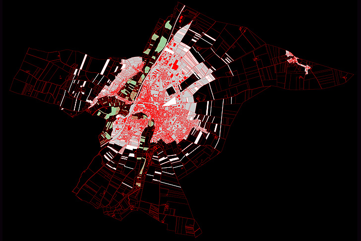 À la recherche d’une nouvelle cohérence territoriale, le plan directeur de paysage de la ville développe deux pistes : le traitement des limites entre habitat et agriculture, et la transformation des vallées traversant la ville. En périphérie urbaine, des parcelles agricoles résiduelles, parmi et au-delà des lotissements, cernent la ville. Le plan directeur propose l’achat et la plantation progressive de ces parcelles, à l’image des vergers qui ceinturaient autrefois certaines villes médiévales. Ces terrains reconstituent progressivement une trame d’espaces publics ponctuels au cœur des lotissements, formant un ensemble de promenades. Ces lignes paysagères, concentriques ou rayonnantes, mais aussi décalées, créent une ossature végétale capable d’accueillir de nouveaux développements tout en donnant de la qualité aux habitations existantes. Après observation de ces territoires agricoles, de leurs usages et de leurs pièces spécifiques, nous proposons une dynamique de substitution qui compose étroitement avec le ‘déjà-là’ tout en étant une invention singulière.