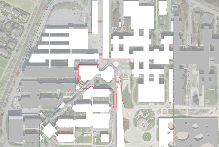 La conception paysagère initiale du campus, basée sur des cordons boisés s’immiscant entre son architecture modulaire accompagnés de nombreuses zones humides, est restaurée et amplifiée.