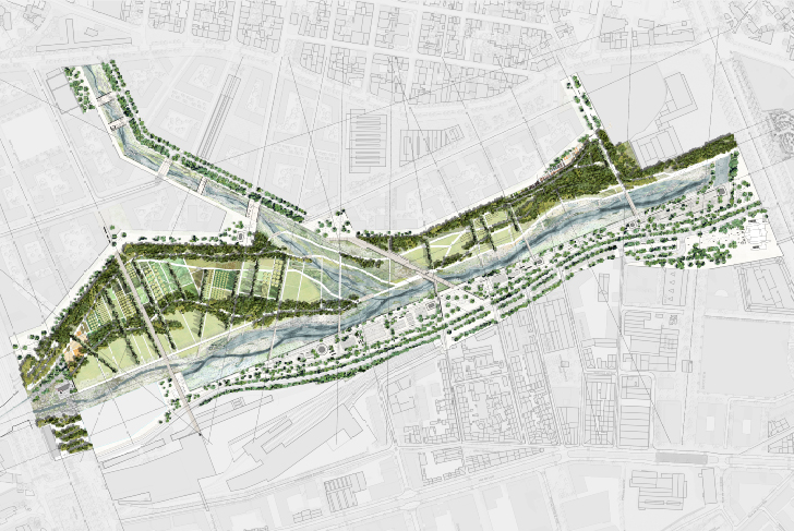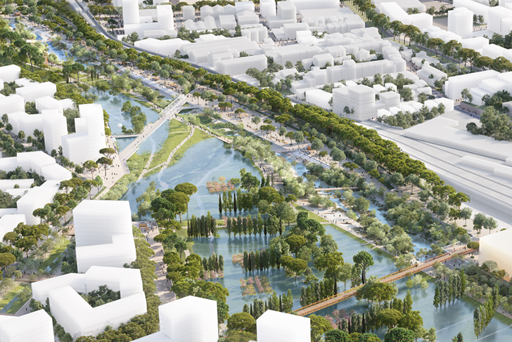 Ce vaste parc urbain inondable de 16ha vient s’installer sur le site de l’ancienne gare de triage du Canet. Future pièce paysagère structurante des quartiers Nord de Marseille, le parc s’inscrit dans l’opération de renouvellement urbain menée par Euroméditerranée. Traversé par deux cours d’eau renaturés, le ruisseau des Aygalades et son affluent le ruisseau des Lions, la question hydraulique est au cœur de sa composition, simple et cohérente. La renaturation de ces cours d'eau s’inspire d'un paysage de vallon provençal, naturellement résilient face aux risques (crues comme sécheresse) et riche d'une grande diversité de milieux écologiques.