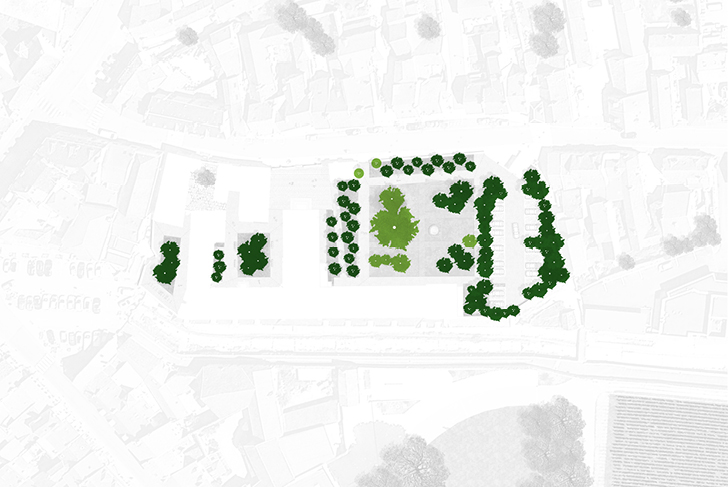 L’approche paysagère s’inspire de l’histoire du lieu et de ses jardins clos, situés entre ville et plaine viticole. Le jardin devient un véritable lieu d’agrément et de rencontre pour les habitants du site. Il offre un accès direct au grand public pour visiter la Chapelle et l’Apothicairerie historique, dans le prolongement du parcours historique municipal « François Thurot ». La majorité du site est maintenue en pleine terre. La mise en place des vignes augmente la capacité d’infiltration des eaux pluviales grâce à leur système racinaire profond. Trois espaces distincts et complémentaires s’articulent. Le Jardin historique, situé à l’est, retrouve sa lisibilité et son organisation en croix, de lieux anciennement dédiés à la production alimentaire de l’hospice. Il accueille une grande diversité d’espaces plantés et de combinaisons végétales : pelouse, cultures, prairies fleuries, vergers, vignes. Les Cours jardinées, initialement minérales, retrouvent leur organisation géométrique simple. Ces espaces proposent des tables de pique-nique, bancs, accès vélos etc… Le Verger de stationnement s’inspire du motif du verger clos, avec ses arbres fruitiers aux floraisons variées, plantées en tiges et en cépées, d’une grande richesse esthétique et environnementale. La strate arbustive assure une intégration optimale des véhicules au sein de cet espace classé. Les places du parking revêtues de gravier, assurent une réelle perméabilité des sols.