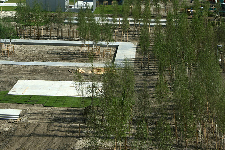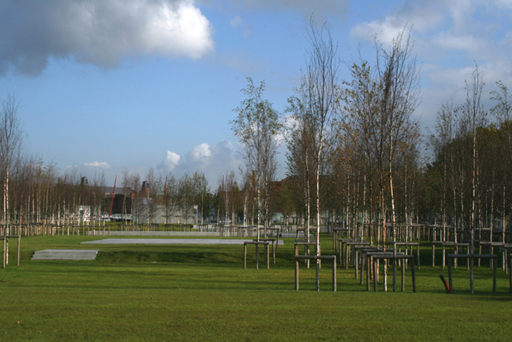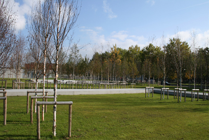 Un grand bois de bouleaux et ses clairières se superposent à l’ensemble pour unifier le parc sous une strate arborée homogène.